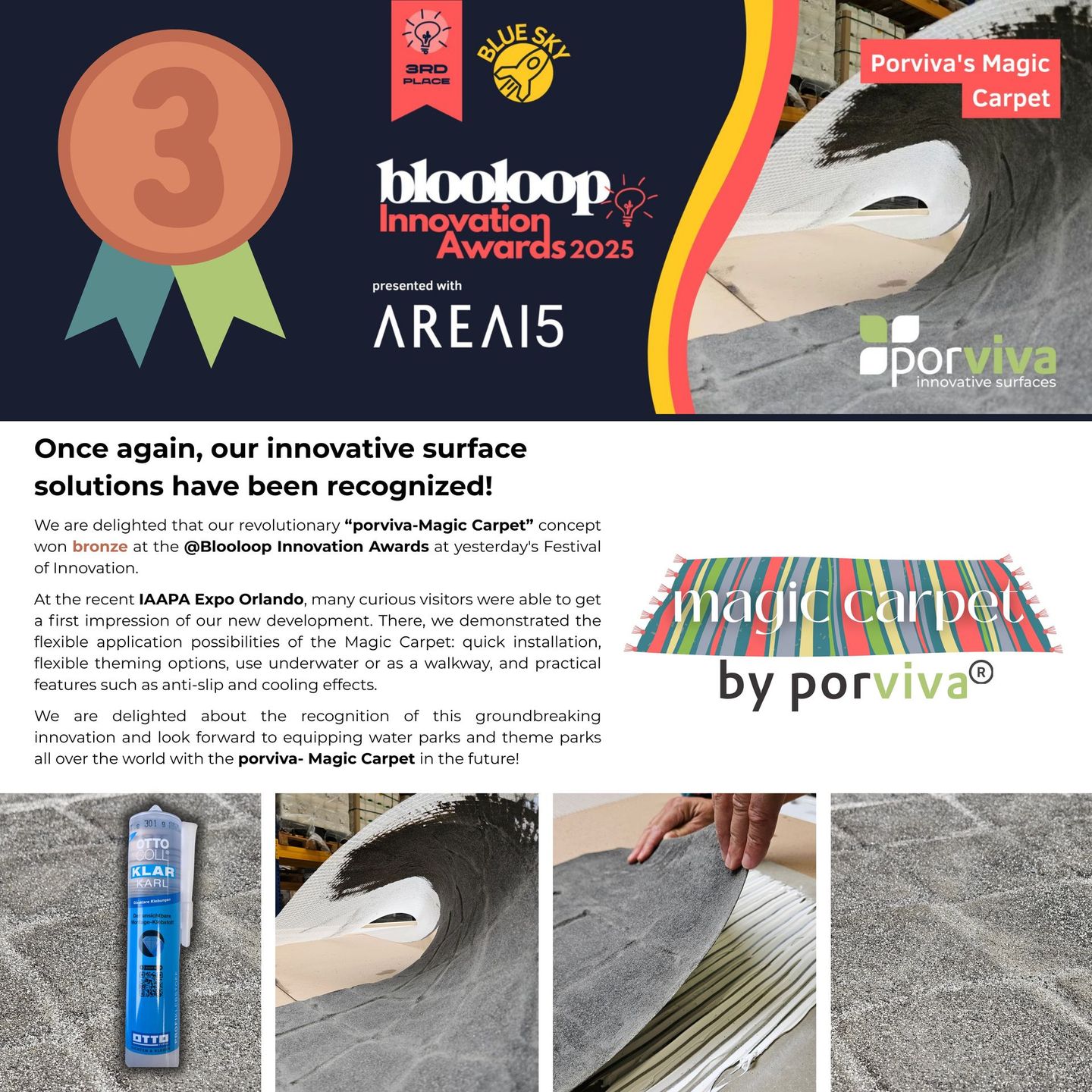 Porviva GmbH develops, produces and distributes materials and product solutions which make an important contribution to our future. We offer solutions for specialized floor coatings and waterproofing in water/ theme parks, buildings, transportation infrastructure and industrial applications